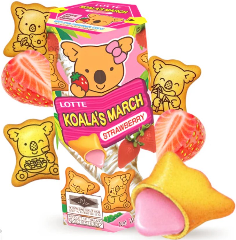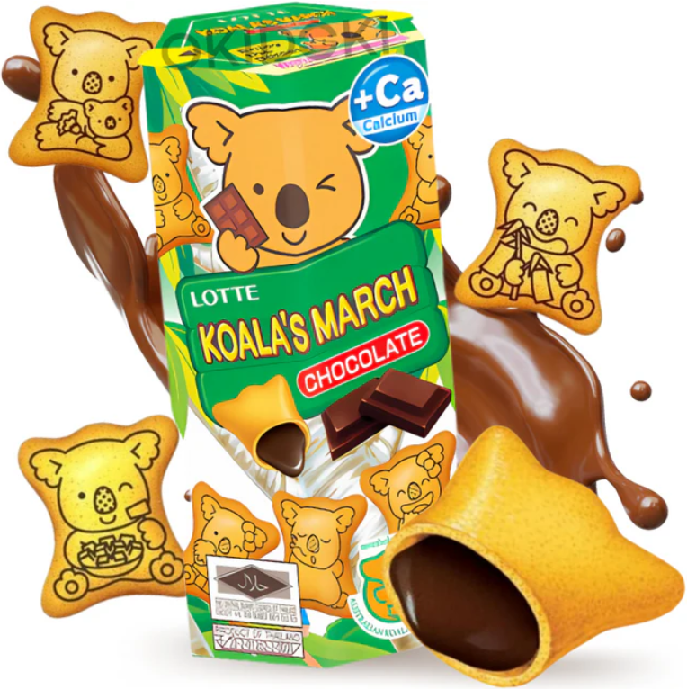 Koala's March is one of the most recognizable snack biscuit products developed by Lotte Confectionery. Since its launch, the brand has become popular across many Asian and international markets thanks to its unique koala-shaped biscuits and delicious cream fillings.